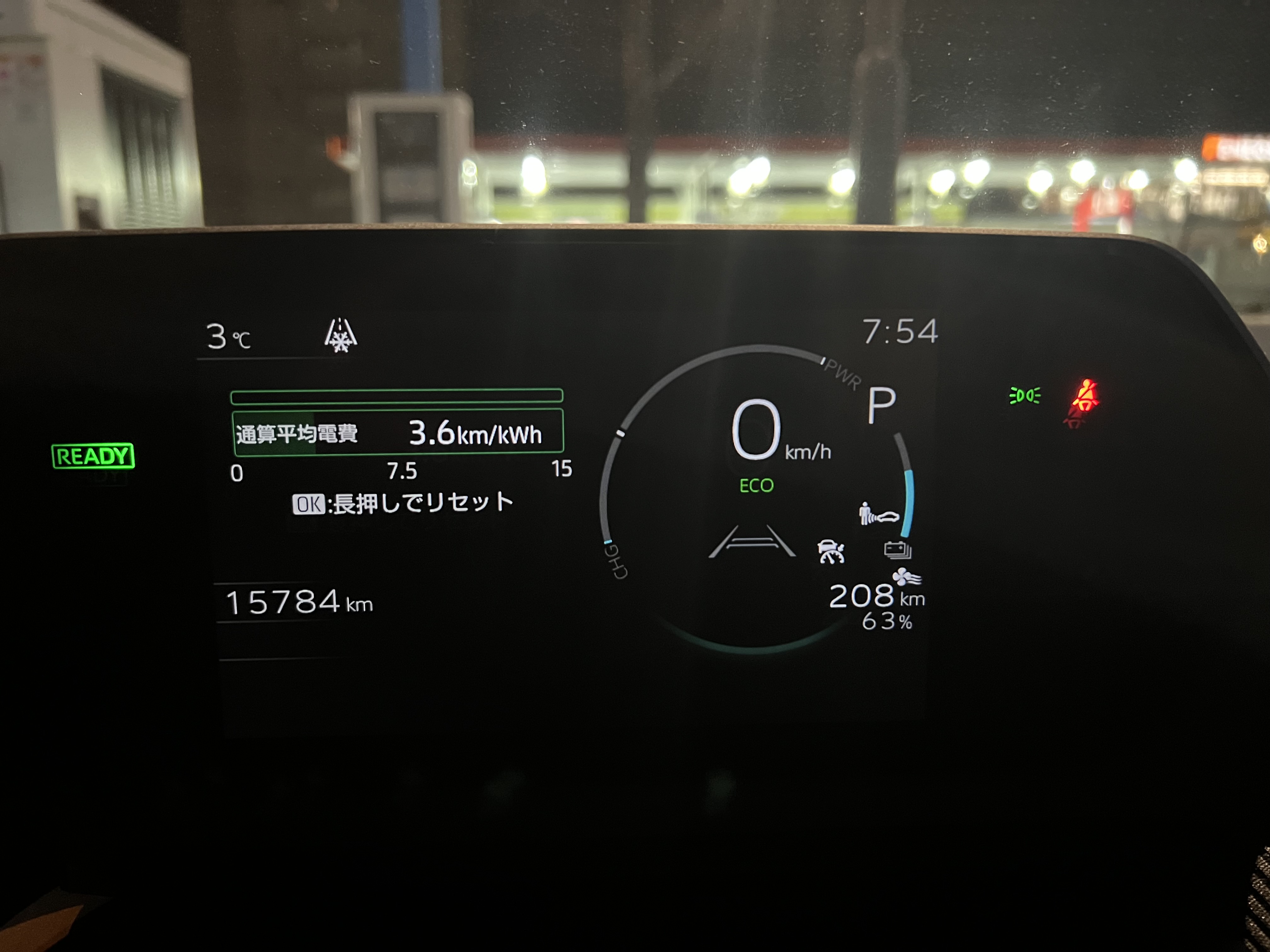 A型の航続可能距離。バッテリー残量63%で208㎞。