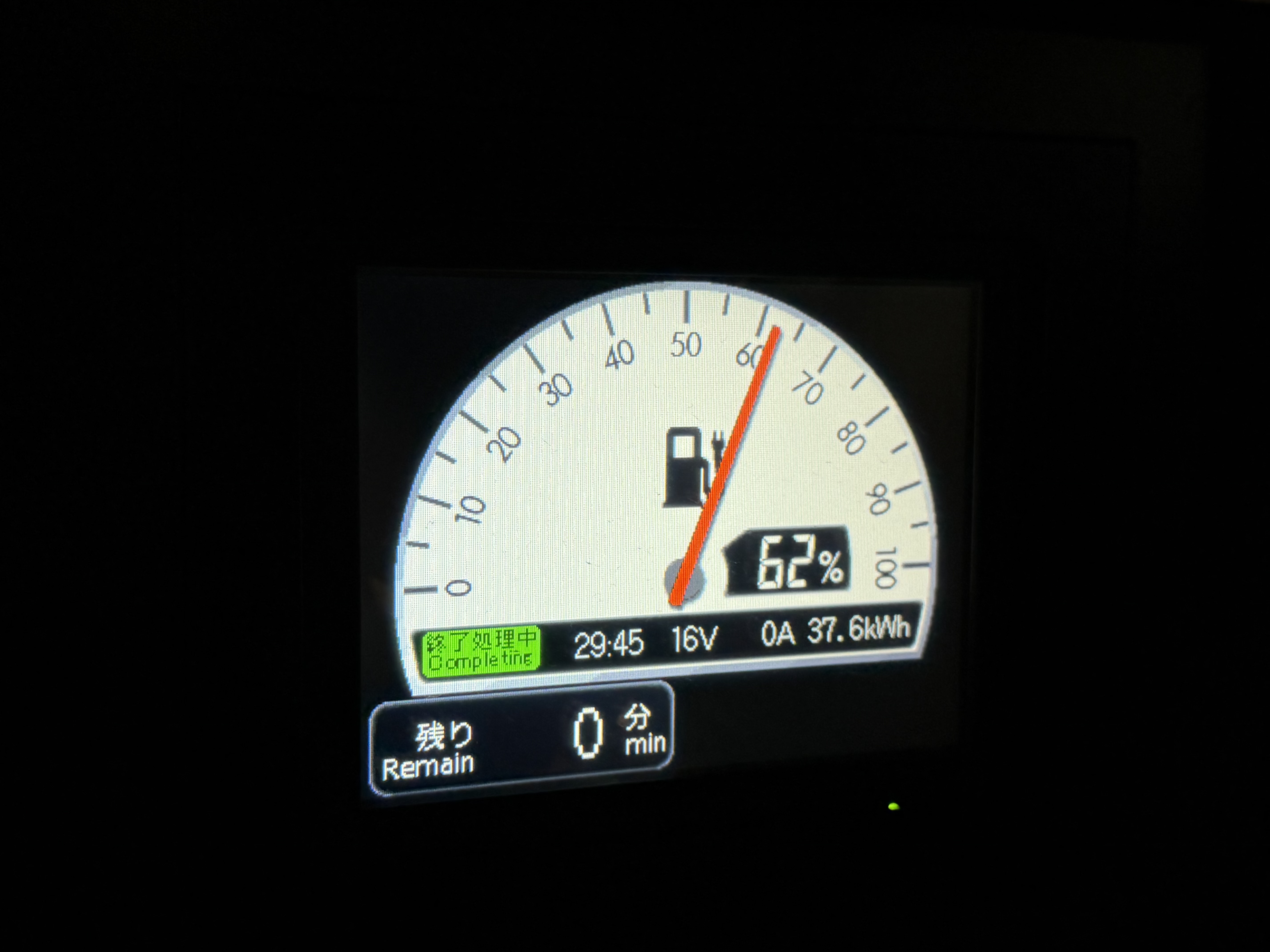 続いてD型では30分でほぼ同じ62%まで充電されましたが、なんと37.6kWhも入りました。